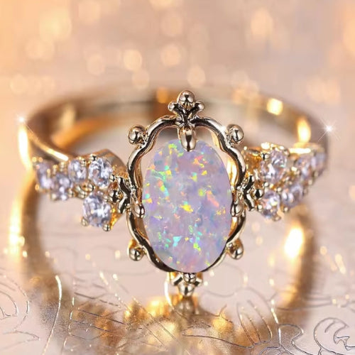 For Women Vintage Gold Color Bridal Wedding Ring Birthstone Jewelry Engagement Band Gift